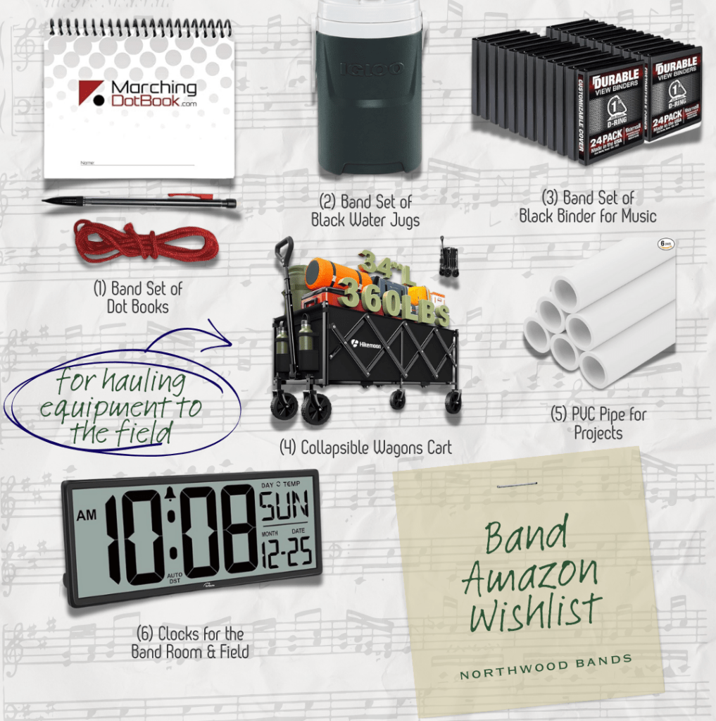 Our band is almost completely funded by our band families, fundraisers, and the generous donations from friends and community members like you! It’s easier than ever to support the Northwood High School band program.